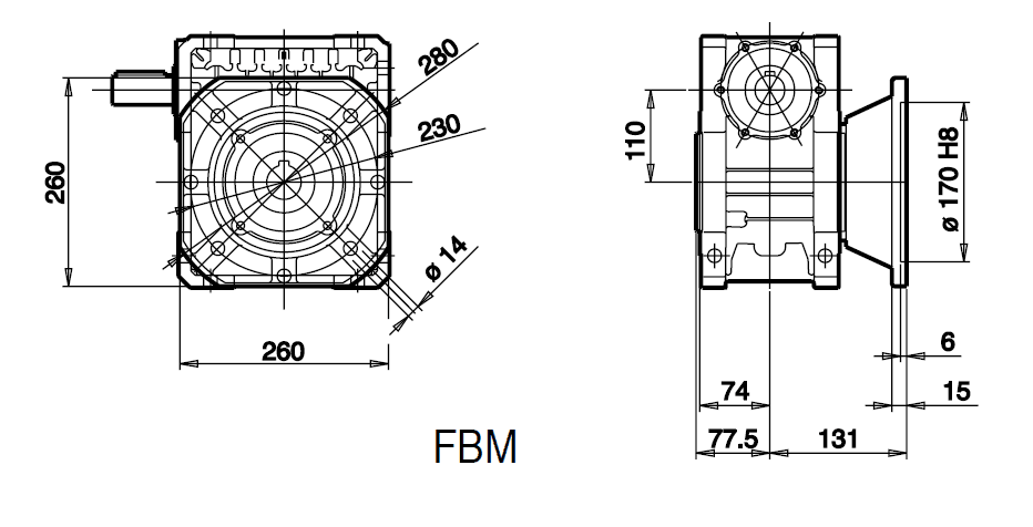 Zapytaj o dobór / ofertęFBM kołnierz zdawczy / boczny / wyjściowy do przekładni SITI MU 110